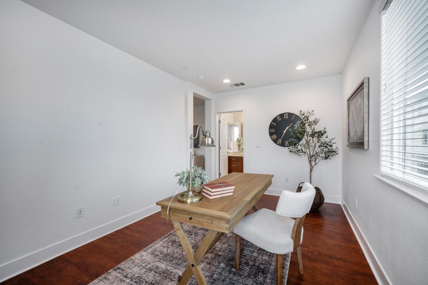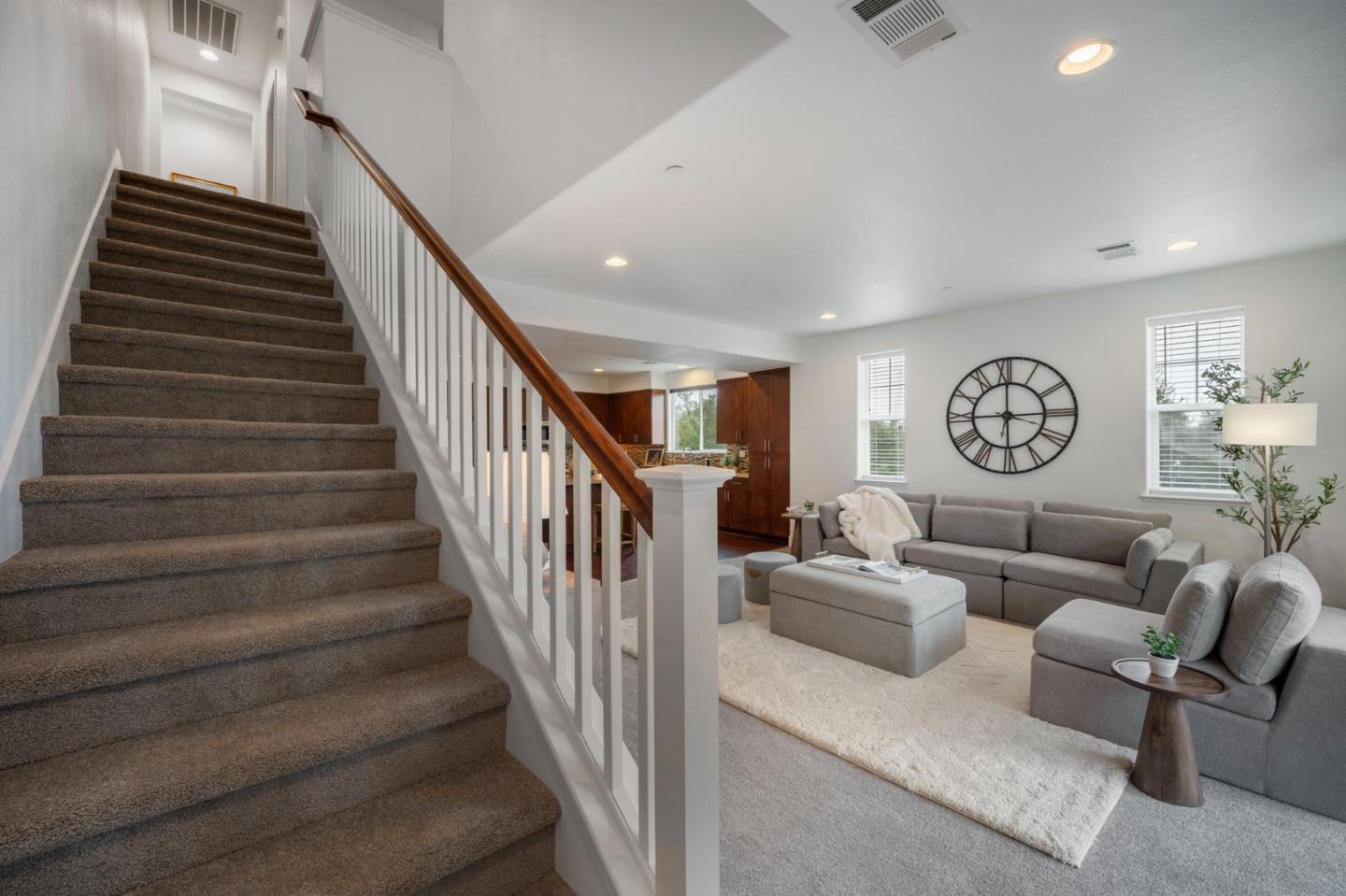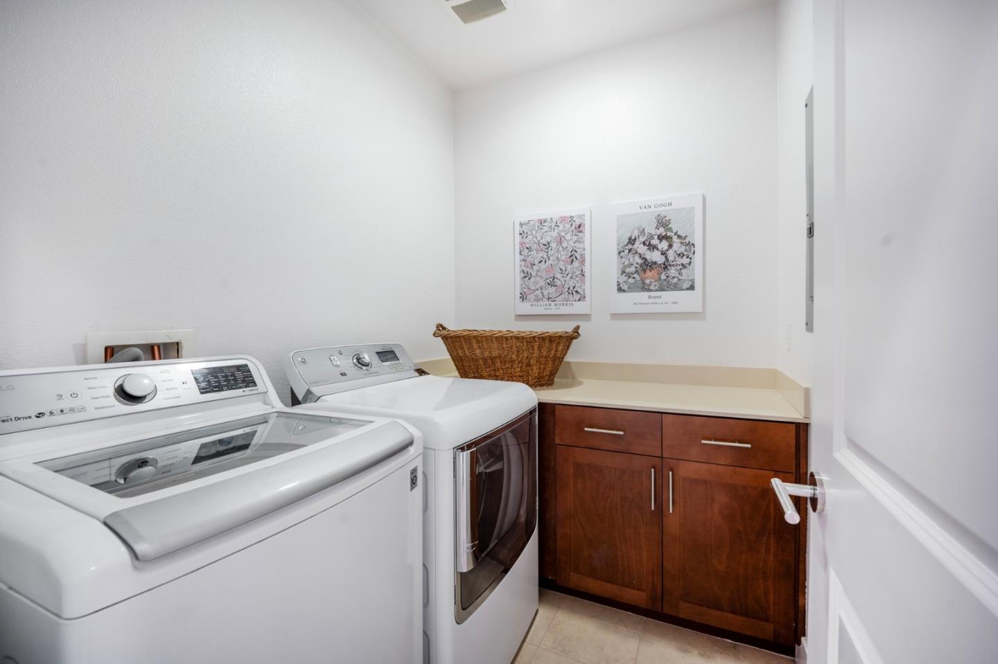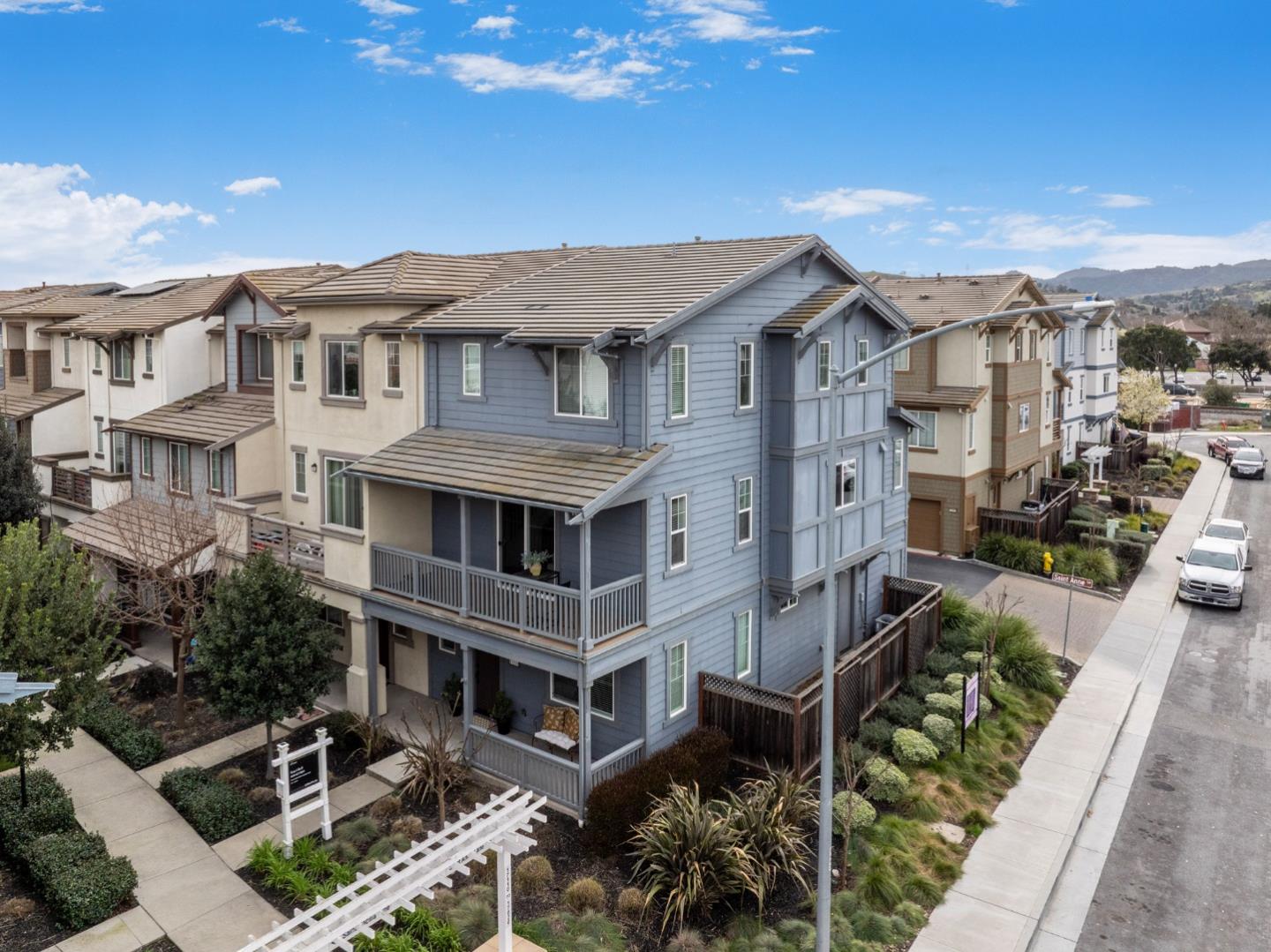 Welcome to this stunning 3-bedroom, 3.5 bath home located in the beautiful city of Morgan Hill-Santa Clara county. This spacious 2274 sq ft residence sits on a 1307 sq ft lot. The kitchen boasts a solid surface countertop, spacious island, microwave, oven range with gas, and refrigerator, perfect for all your culinary needs. Enjoy the high ceilings and gather in the family room, which seamlessly connects to the kitchen. The home features a mix of carpet, laminate, tile, flooring throughout. The primary suite includes a walk-in closet and a luxurious bathroom with double sinks, an oversized tub and stall shower. Additional amenities include central AC with multi-controls, ceiling fans, double pane windows, and a tankless water heater. The in-unit laundry room comes equipped with a washer and dryer. The property also includes a 2-car garage for your convenience and owned water softener. Don't miss out on the opportunity to own this exceptional home in Morgan Hill near the vibrant downtown farmer's market, popular restaurants and other exciting venues.
