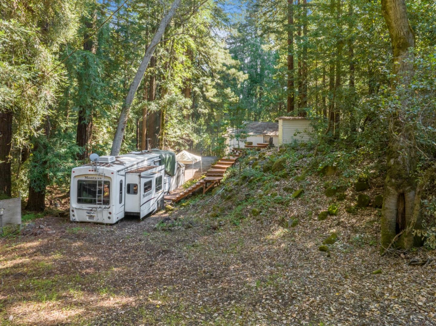 Escape to your own private retreat at 7156 Redwood Retreat Road in Gilroy, CA. Nestled among majestic redwoods this cozy cabin offers a tranquil lifestyle. The 1-bedroom, 1-bathroom home boasts 768 square feet of living space, perfect for those seeking a peaceful haven. With a total lot size of 217,800 square feet, there's ample room to roam and explore. The property features a serene creek, adding to its natural allure. Whether you're looking for a weekend getaway or a year-round sanctuary, this property offers endless possibilities. Embrace the beauty of nature and the potential for a horse property, all within reach at Redwood Retreat Road.
